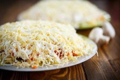 Sūrį taip pat sutarkuokite smulkia tarka, geriausia rinktis kietųjų veislių.